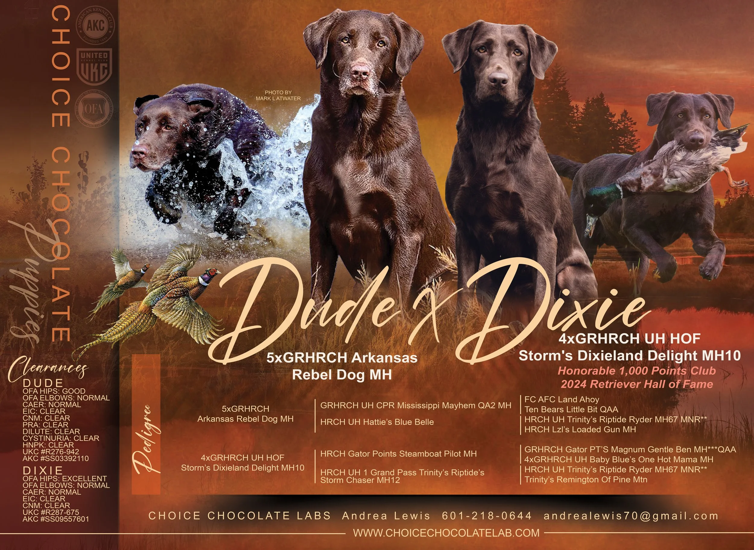 4XGRHRCH UH STORM’S DIXIELAND DELIGHT MH “DIXIE” X 5XGRHRCH ARKANSAS REBEL DOG MH “DUDE”