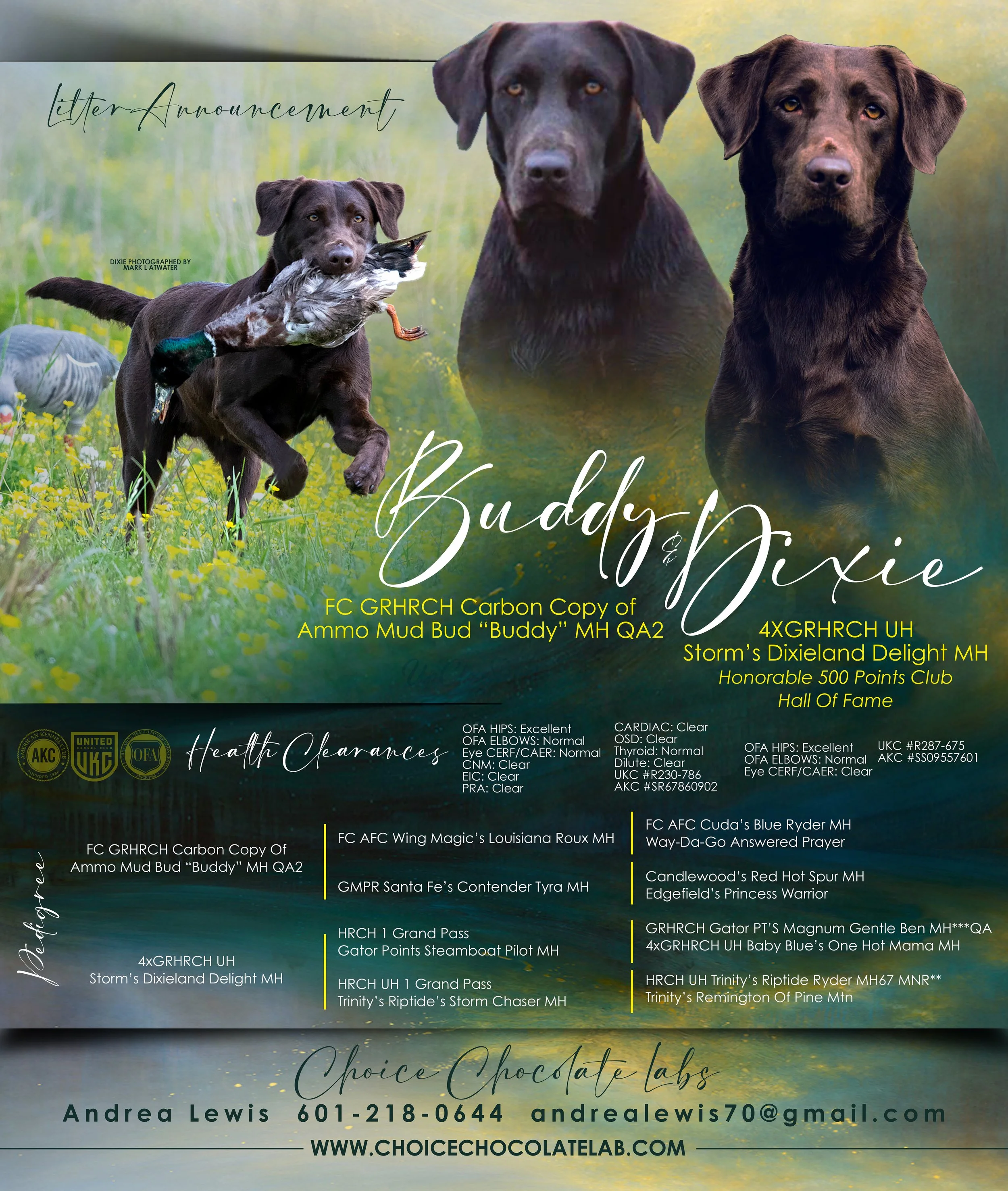 Awesome pedigrees on both sides of these 2 beautiful chocolates.